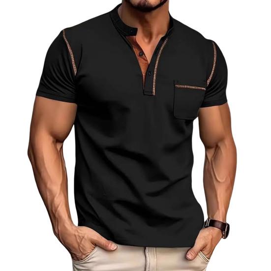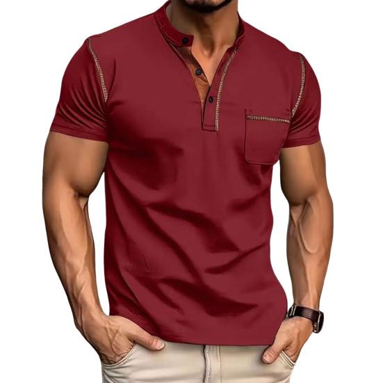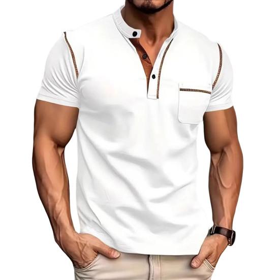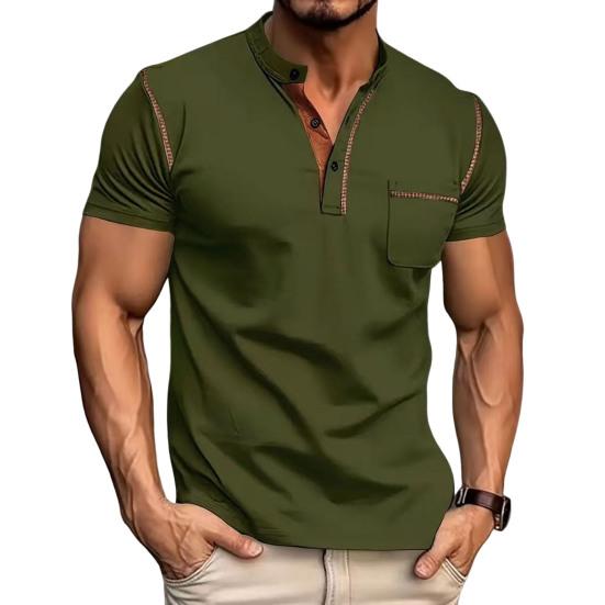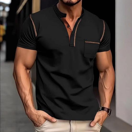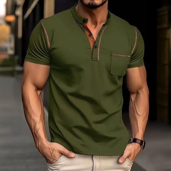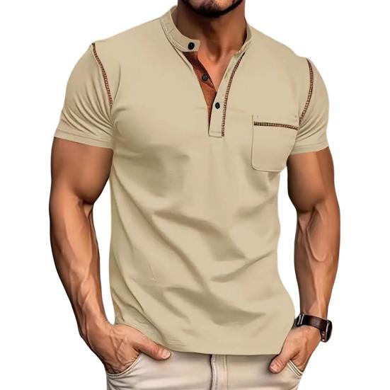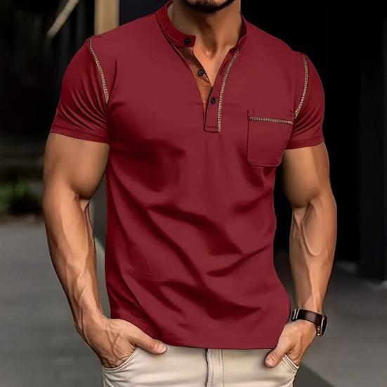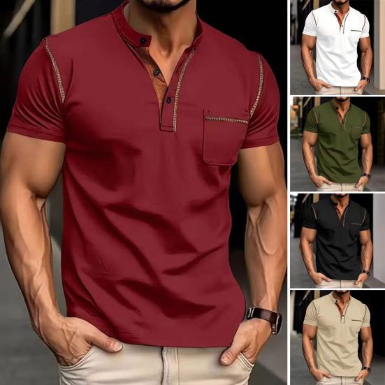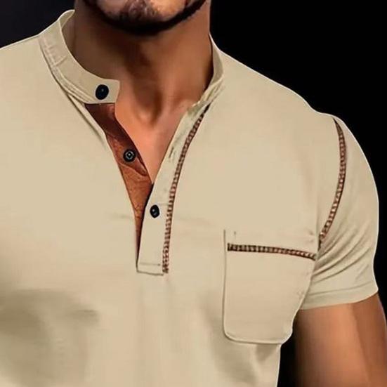 дизайн: Этот мужской топ с воротником-стойкой и короткими рукавами отличается непринужденным и свободным кроем, идеально подходящим для создания непринужденного, но стильного образа.