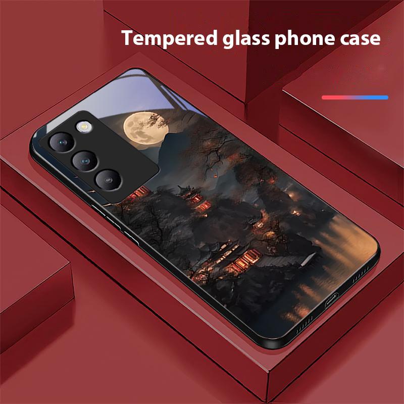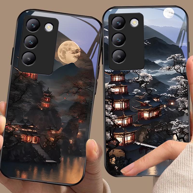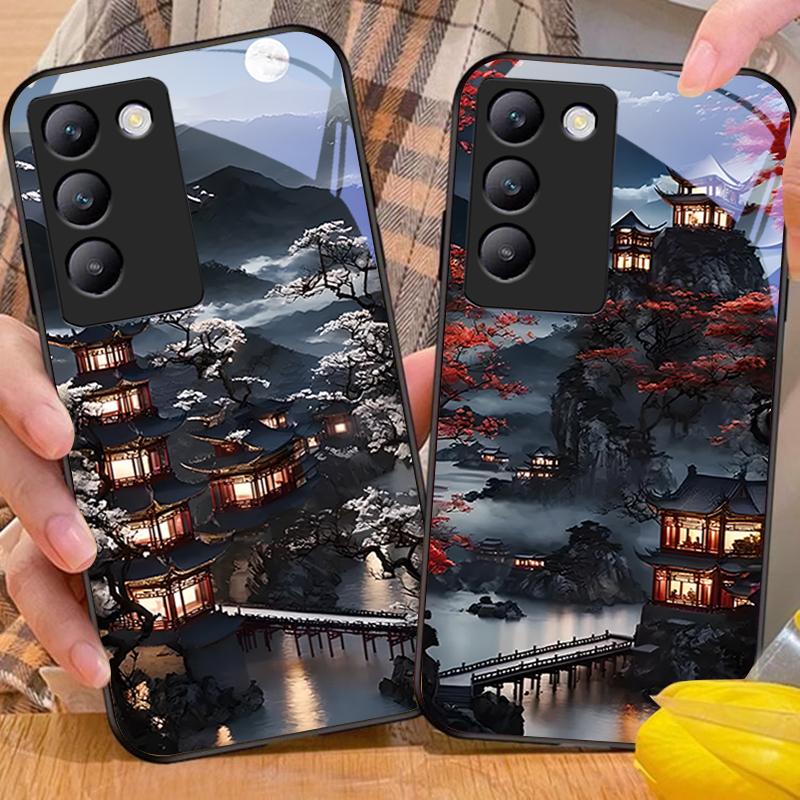 Чехол для телефона из закаленного стекла в стиле ретро для Y72 33S 11 03 36 96 Lite 35 16 Iqoo 12 V40 SE 5G 29 40 21 30 X80 Pro Vivo, черный