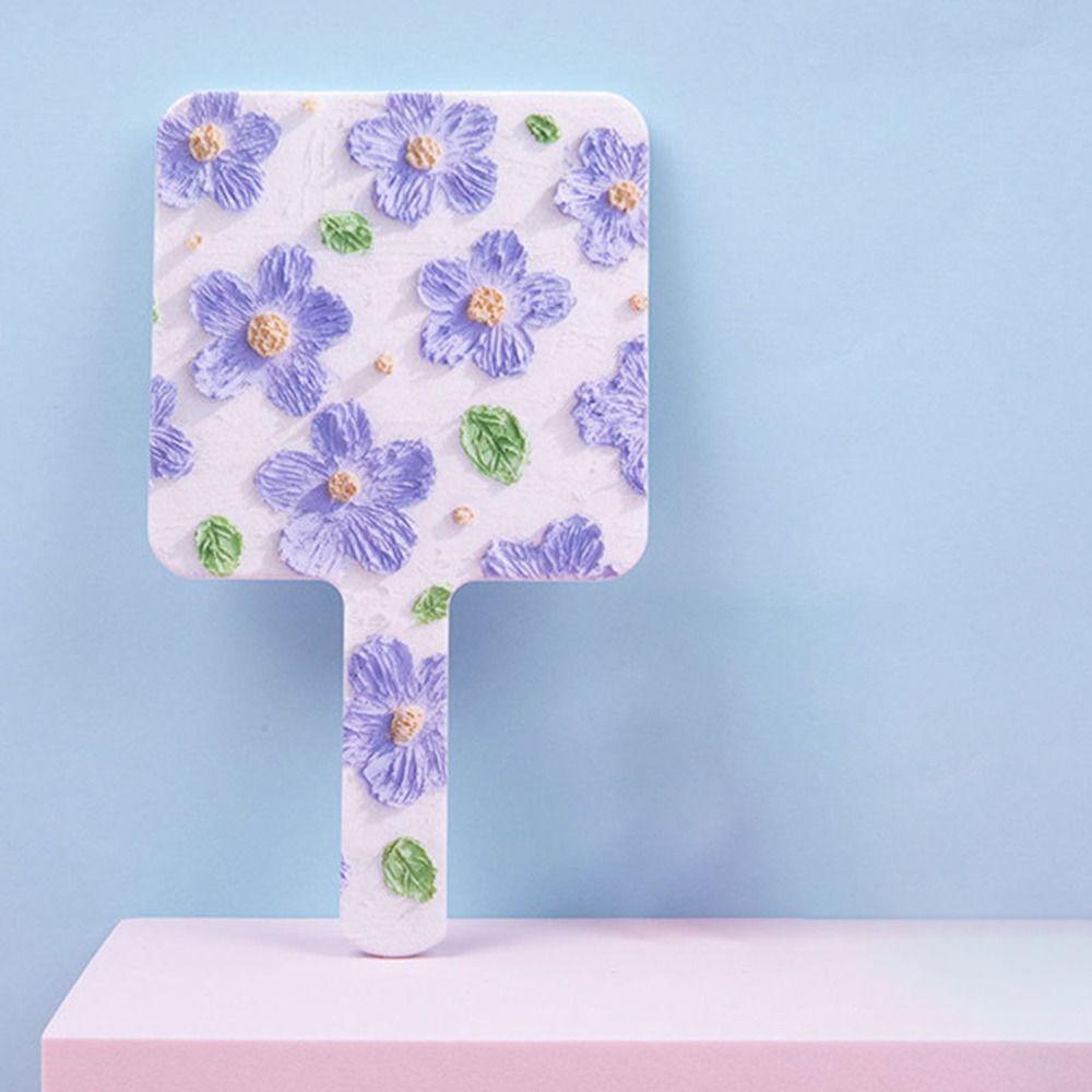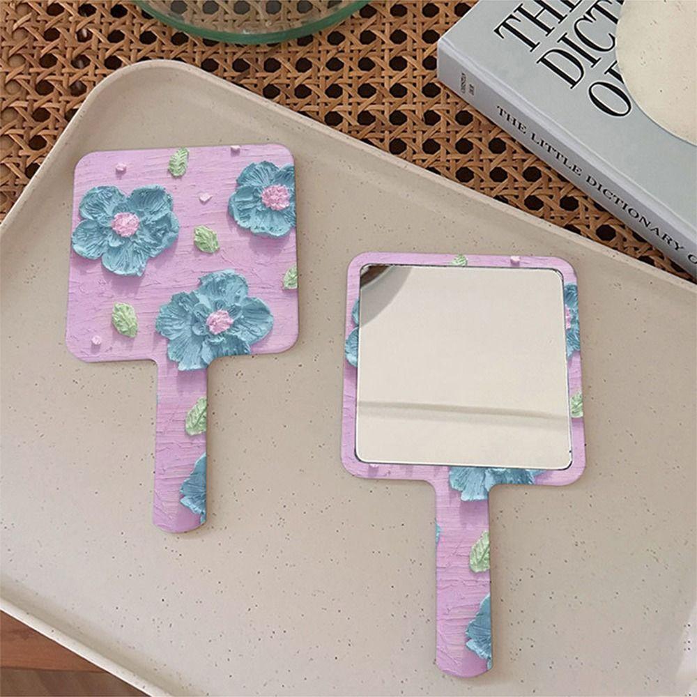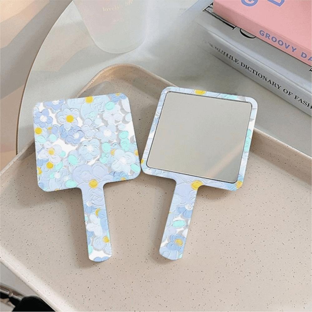 Hand-Held Cosmetic Mirror Flower Makeup Tools Adorable Square Mirrors Woman