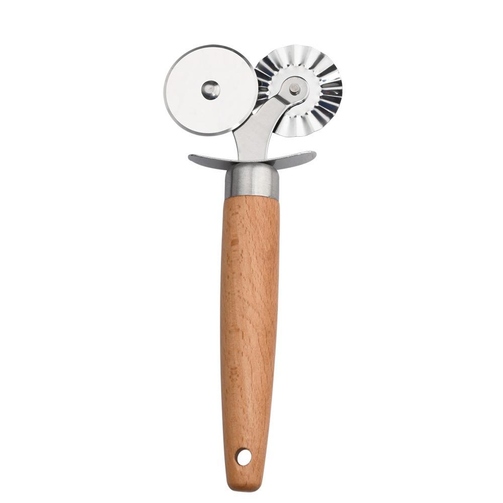 Двойное колесо для тиснения печенья, ролик 2 в 1, нержавеющая форма для равиоли, домашний, деревянная ручка, резак для пасты, кондитерский
