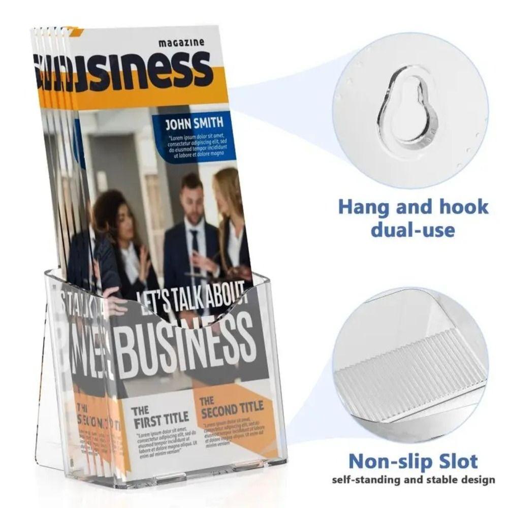 Clear A6 Brochure Holder Plastic Flyer Display Stand Convenient Wall Mount Men