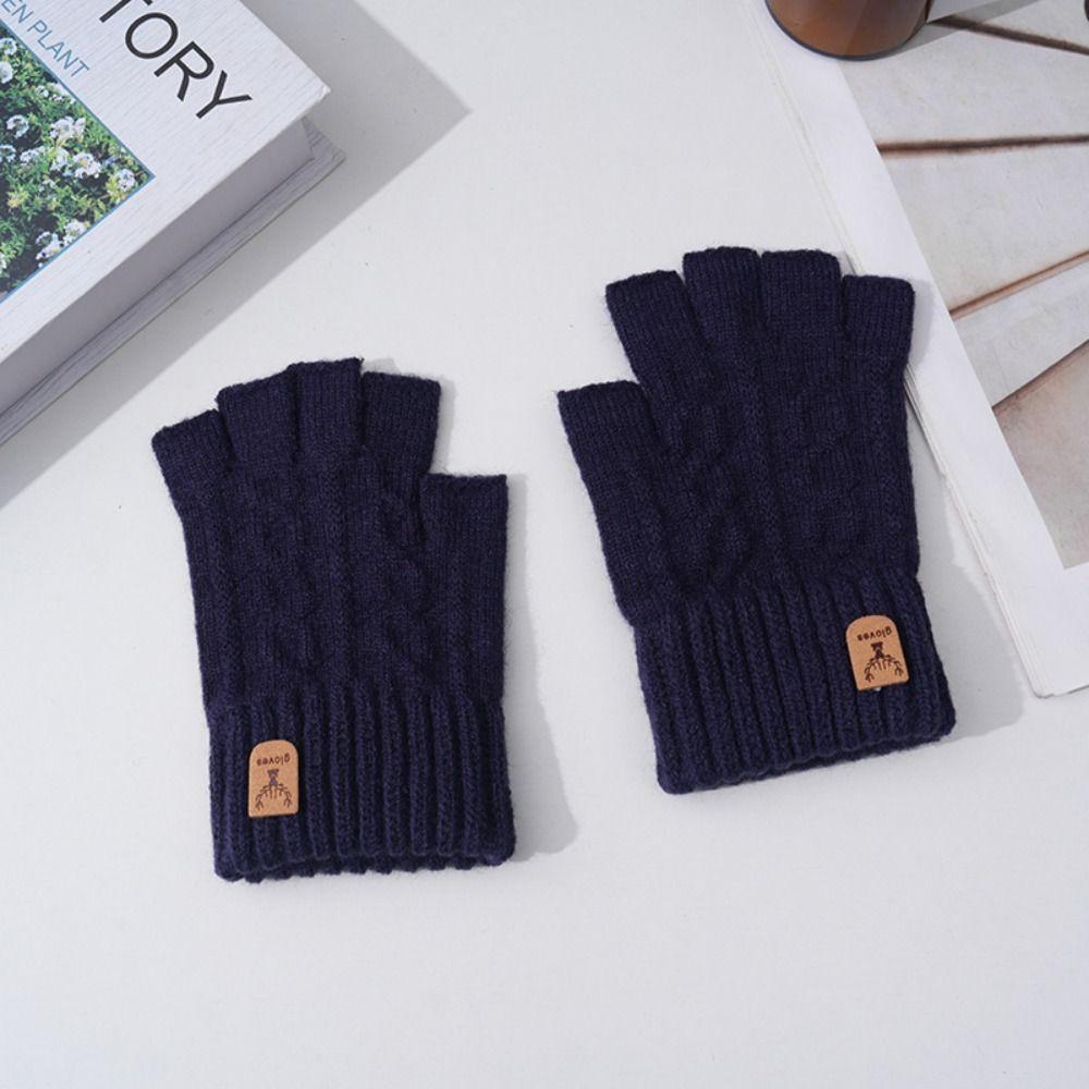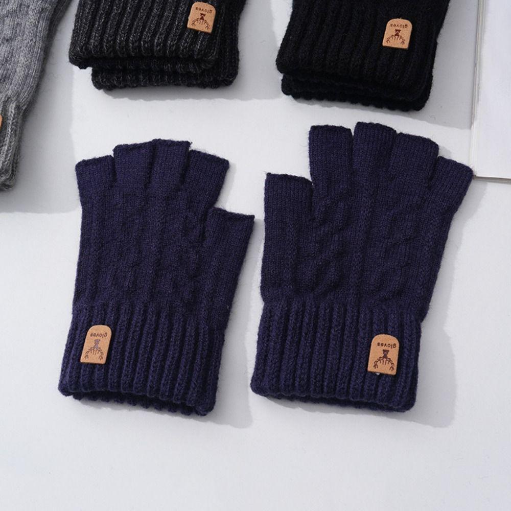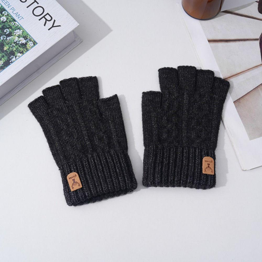 Solid Color Fingerless Gloves Driving Gloves Men Wool Mittens Soft Half-finger Gloves Winter