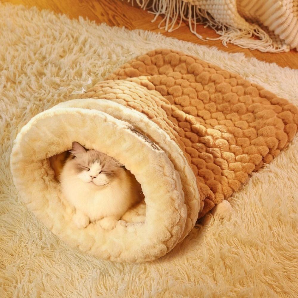 Полузакрытый спальный мешок для кошек, теплый кошачий туннель-гнездо, прочное гнездо-карман для кошек, квартира
