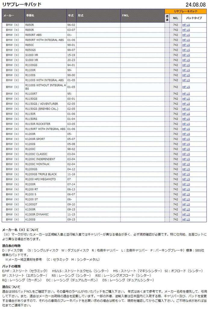 Kitaco SBS Brake Pad 742LS Sintermetal BMW R850R R1100R R1150R K1200R K1300R etc 777-0742030 [LS]