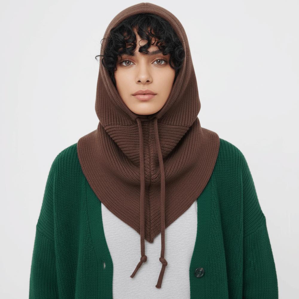 Утепленная балаклава однотонная вязаная шапка-капюшон креативная шапка с защитой ушей женская/для девочек