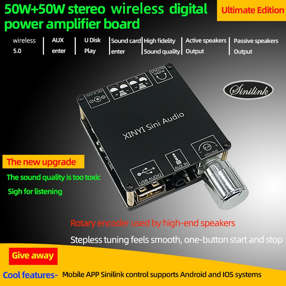 XY-C50L Цифровая плата усилителя 50 Вт x 2 Bluetooth-совместимый аудиомодуль Управление через приложение Стереодинамик Сабвуфер Модулятор Комплект