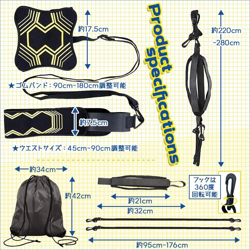 This training set is suitable for a wide range of users, from elementary school students to working adults. The waist belt is adjustable from 45cm to 90cm, making it comfortable for both children and adults. It also fits both size 4 and size 5 balls, making it ideal for school clubs and teams. This versatile set is perfect for practice sessions for the whole family.