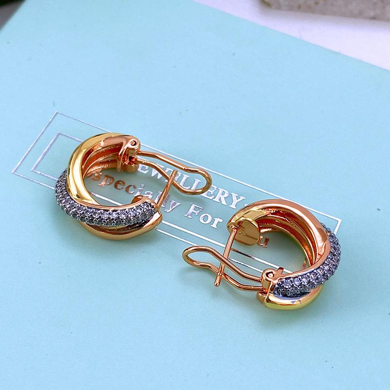 Трехцветные серьги-кольца с кристаллами и покрытием из 18-каратного золота для женщин