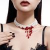 Готическое колье-чокер с кисточкой в виде капли крови и жемчугом — купить товар онлайн с бесплатной доставкой по всему миру!