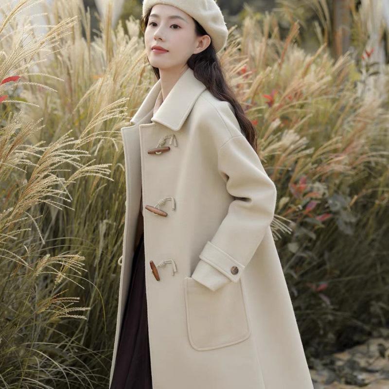 Зимнее шерстяное пальто женское толстое маленькое новое ретро длинное с роговыми пуговицами шерстяное пальто осень и зима.