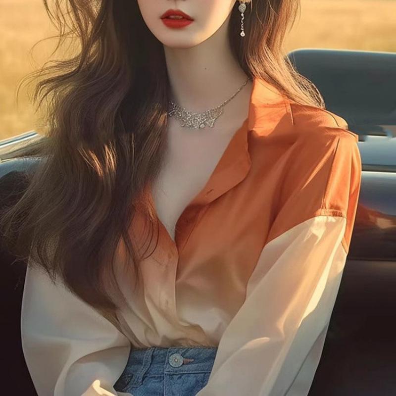 Популярные в этом году топы во французском стиле Оранжевые градиентные рубашки для женщин ранней осенью