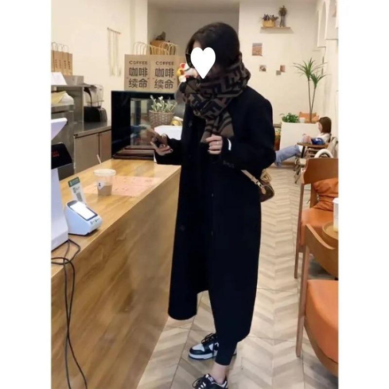 Женское шерстяное пальто Осень и Зима средней длины в корейском стиле свободного кроя с длинным рукавом шерстяное пальто для невысоких — купить товар онлайн с бесплатной доставкой по всему миру!