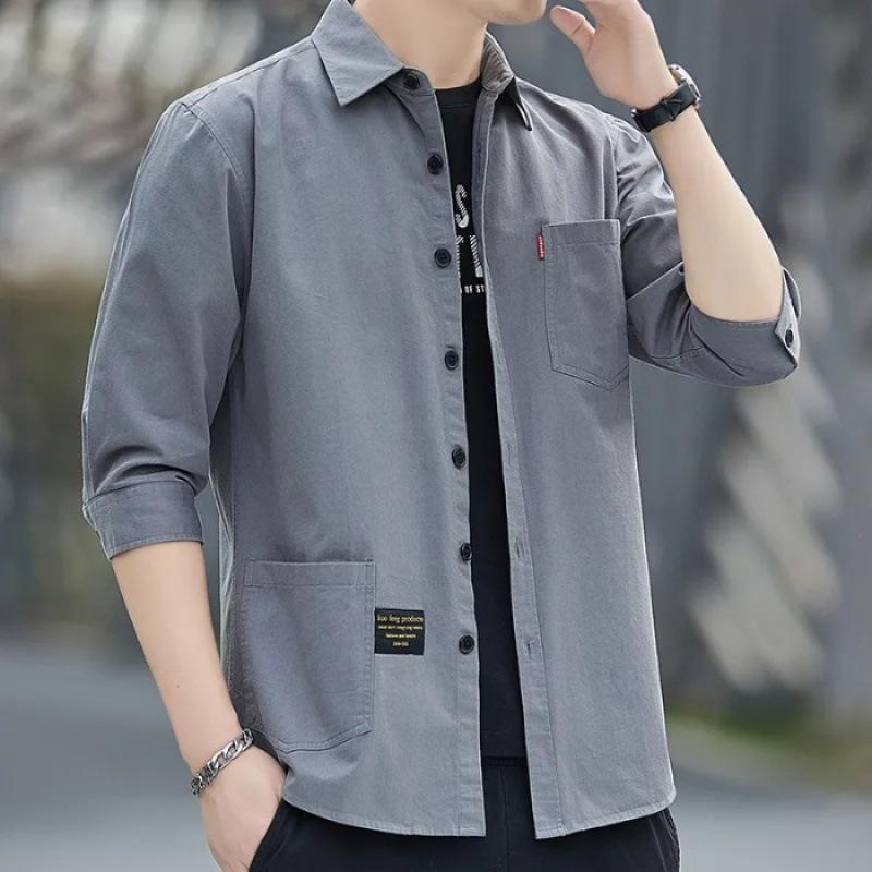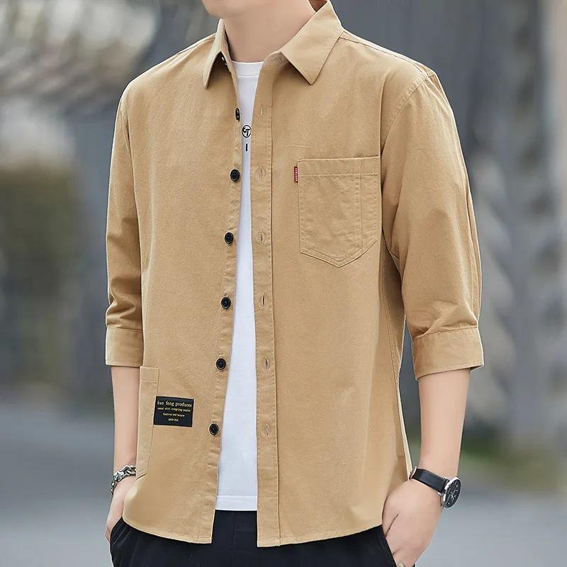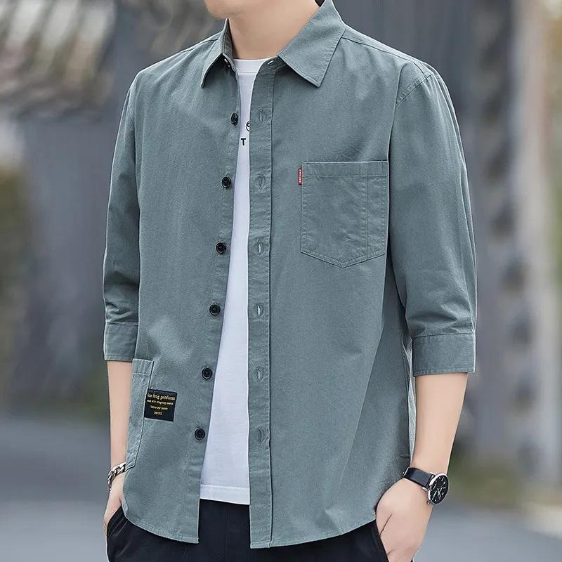 Летняя мужская рубашка с рукавом три четверти, тонкая повседневная рабочая одежда в гонконгском стиле, рубашка-куртка с коротким рукавом, свободная