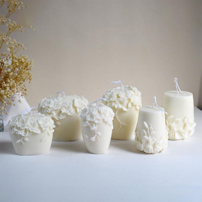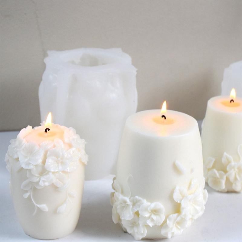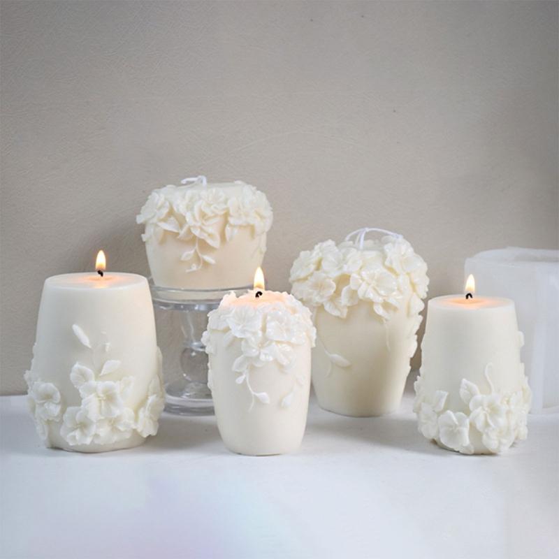 Discover the charm of our 3D Embossed Flower Cylinder Silicone Candle Mould, adding a touch of natural charm to your home decoration, great for making scented candle, soap and wedding decoration.