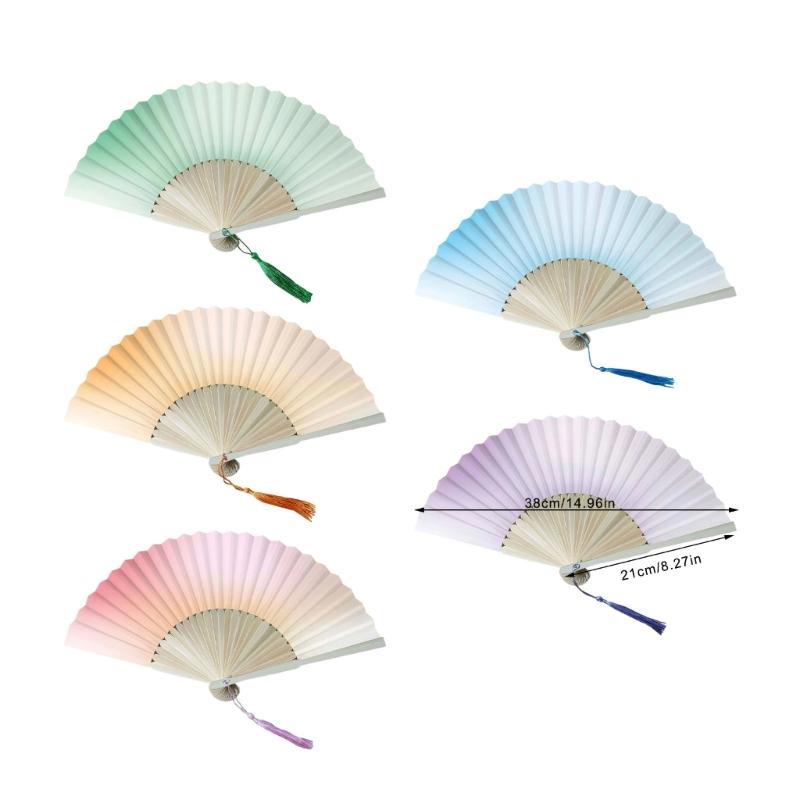 Почувствуйте прекрасное сочетание традиций и современности с нашим градиентным складным ручным веером, изготовленным из качественного бамбука и шелка для долговечности и элегантности.
