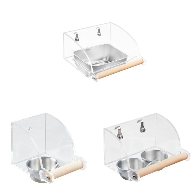 Parrots Food Bowl Acrylic and Sainlessed Steel Parakeet Food Container Anti Spill Design for Home and Bird Enthusiasts