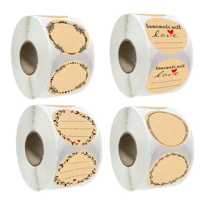 500 шт. Крафт-коричневые наклейки с дизайном в виде венка для надписей, этикетки для консервных банок и праздничных украшений, наклейки для организации