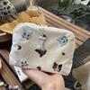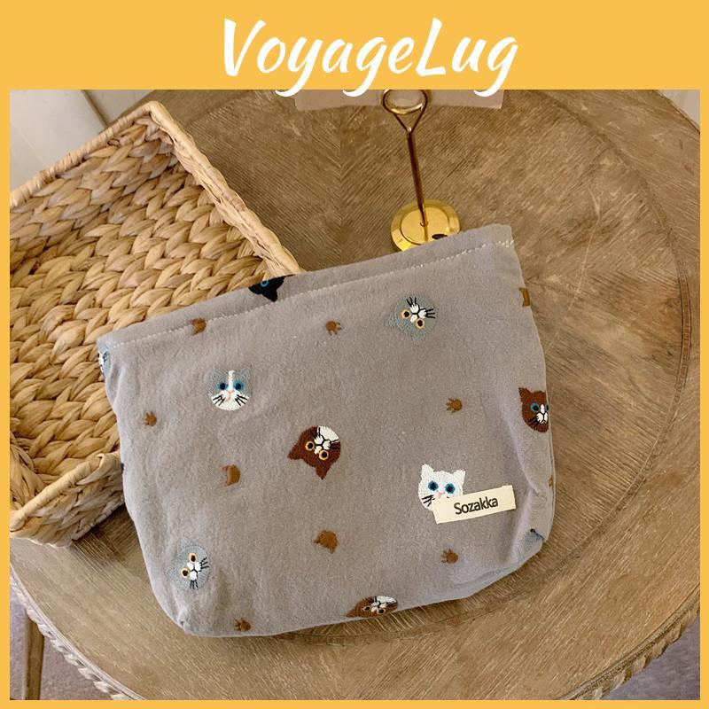 Cute Japanese Style Cat Linen Cosmetic Bag Lipstick Storage Pouch Pen Case Black Gray Beige Soft Canvas Zipper Closure