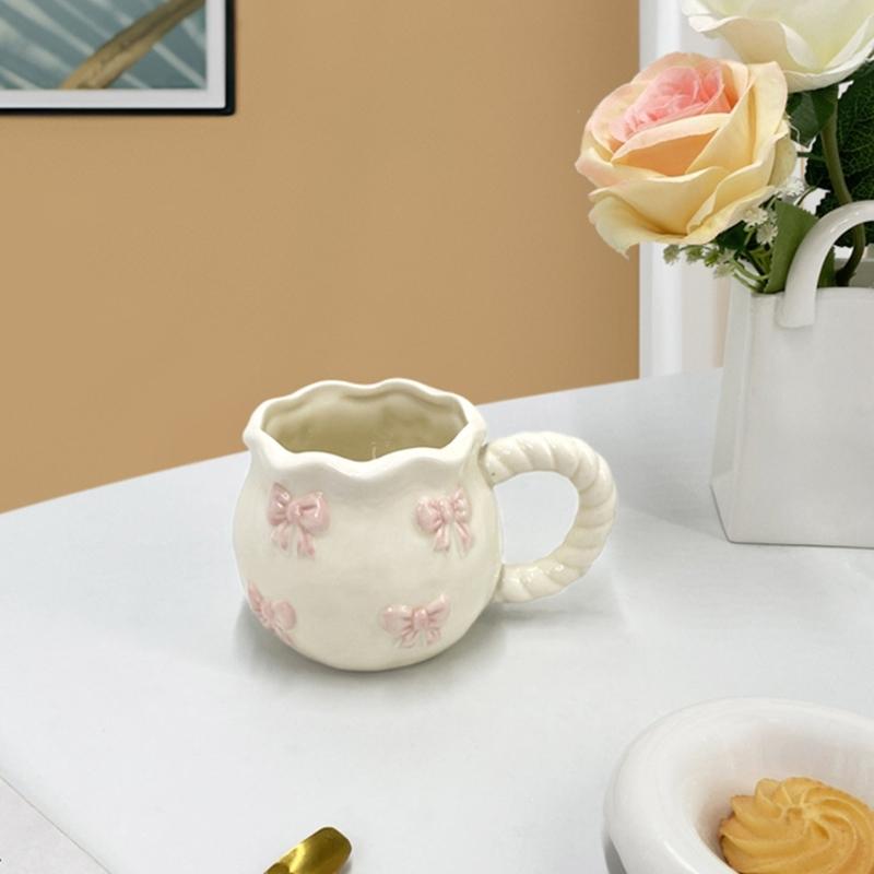 Нежная керамическая кофейная кружка с бантиками, портативная, элегантная, офисная посуда для напитков, можно мыть в посудомоечной машине, столовая посуда, кухонный инструмент