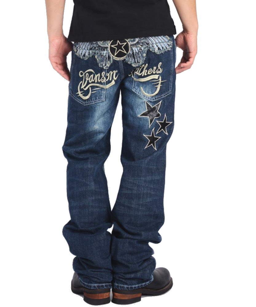 Vanson Вышитые брюки из искусственной кожи с эффектом потертости и джинсовой ткани & SP-B-15 (Размер 30, Индиго)