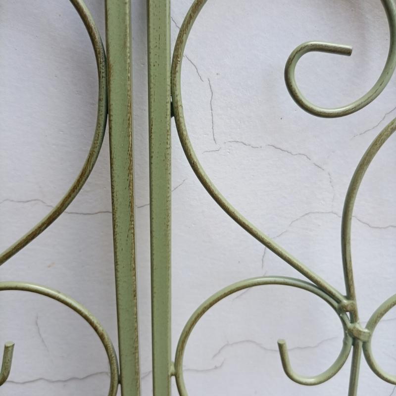 Предварительно просверленные подвесные отверстия и легкая конструкция из кованого железа обеспечивают легкий монтаж в качестве декоративного настенного искусства или винтажной полки.