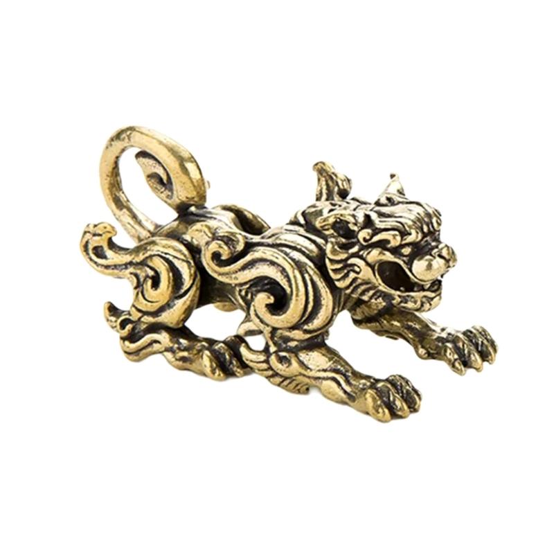Китайская мифическая латунная статуэтка цилиня, миниатюрная, литая, фигурка древнего бога, настольное украшение, декор для кабинета, подарок