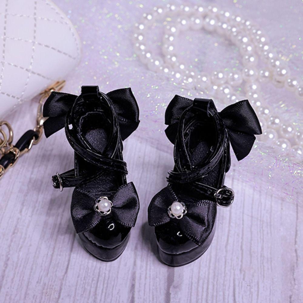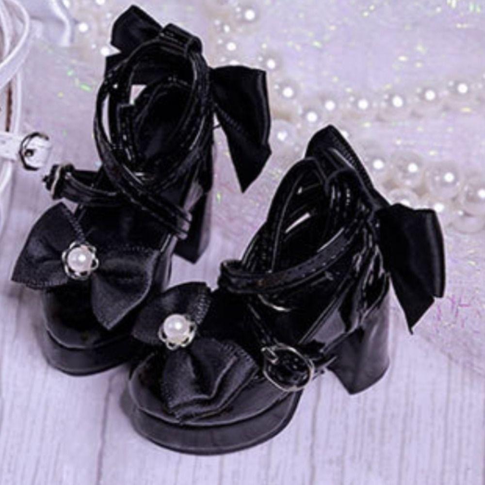 1 Pair PU Bowknot High Heels Pearl Dress Up Doll Shoes Costume Game Doll's Shoes Girl Toys