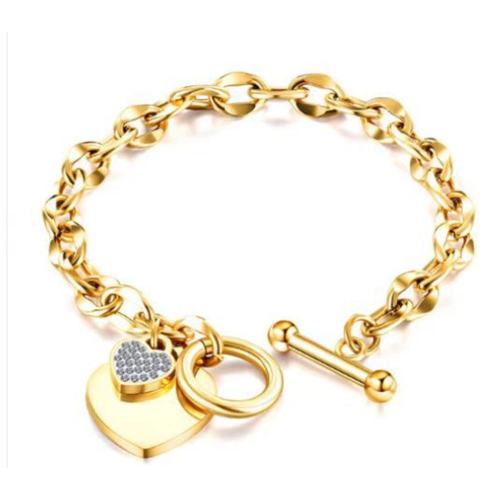 Модный геометрический браслет-сердце из титановой стали для женщин, минималистичный стиль с кристаллами