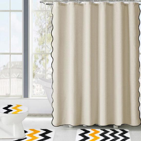 Фестончатая шторка для душа Сверхпрочная водонепроницаемая шторка с 12 крючками Стираемая толстая тканевая шторка для душа с черной каймой для ванной комнаты, отеля, ванны