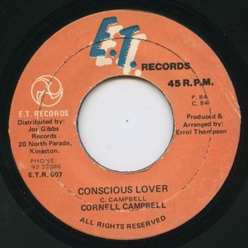 7inch Record CORNELL CAMPBELL Conscious Lover ETR007 E.T. Records 1984 Jamaica Reggae Ska Dub Used