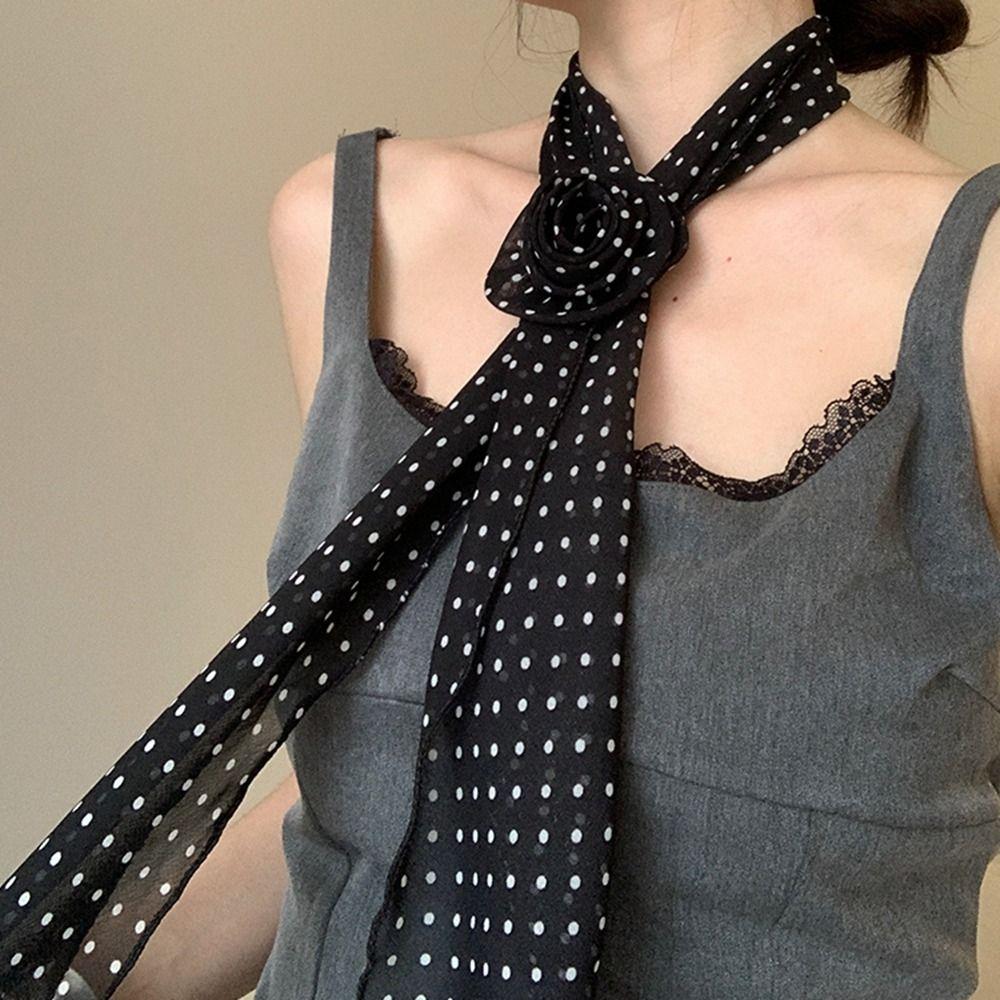 Wrap Long Silk Scarf Cravat Collar Flower Decoration Elegant Polka Dot Scarves Women