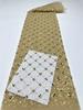 Золотая африканская кружевная ткань из тюля 2025 Французская сетка с пайетками Ткань для шитья Вышивка бисером Кружево Тюль Сетка Нигерия Платье 5 ярдов