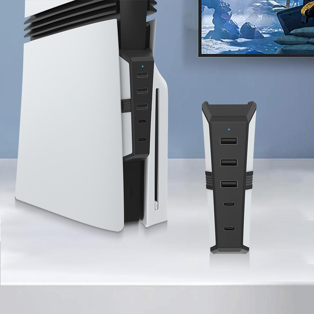 5 Ports USB Extender with 3x USB 2.0 1x USB Type-C 1x Type-C 3.1 USB Port Extender for PlayStation 5 Pro Console Disc & Digital