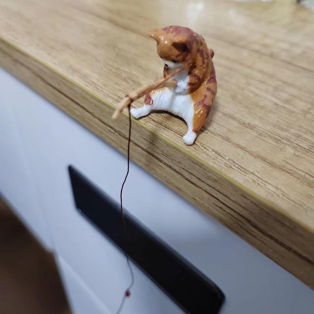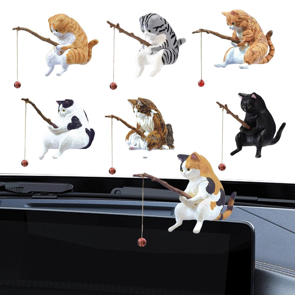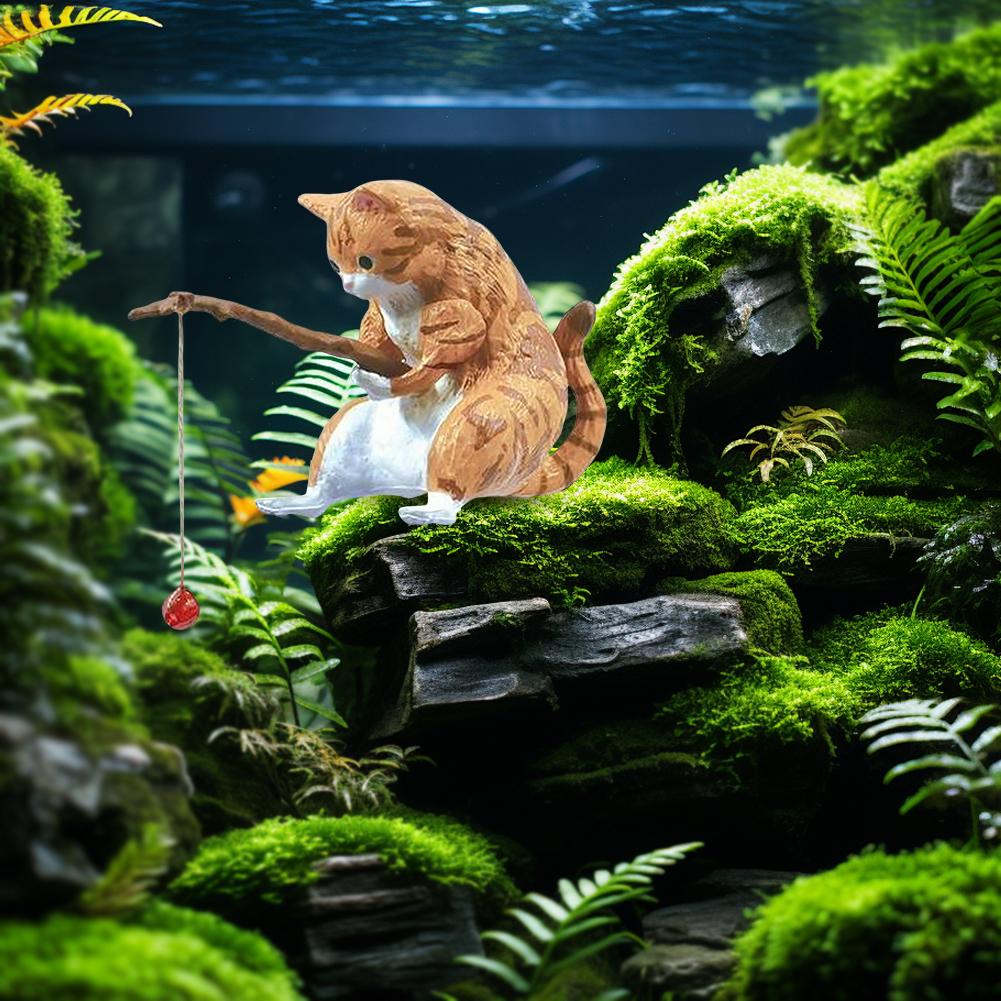 Рыба Пейзаж Мультяшная Статуэтка Кота Милая Фигурка Кота-Рыбака Милый Кот Ландшафтный Декор Украшение Интерьера Дома Автомобиля