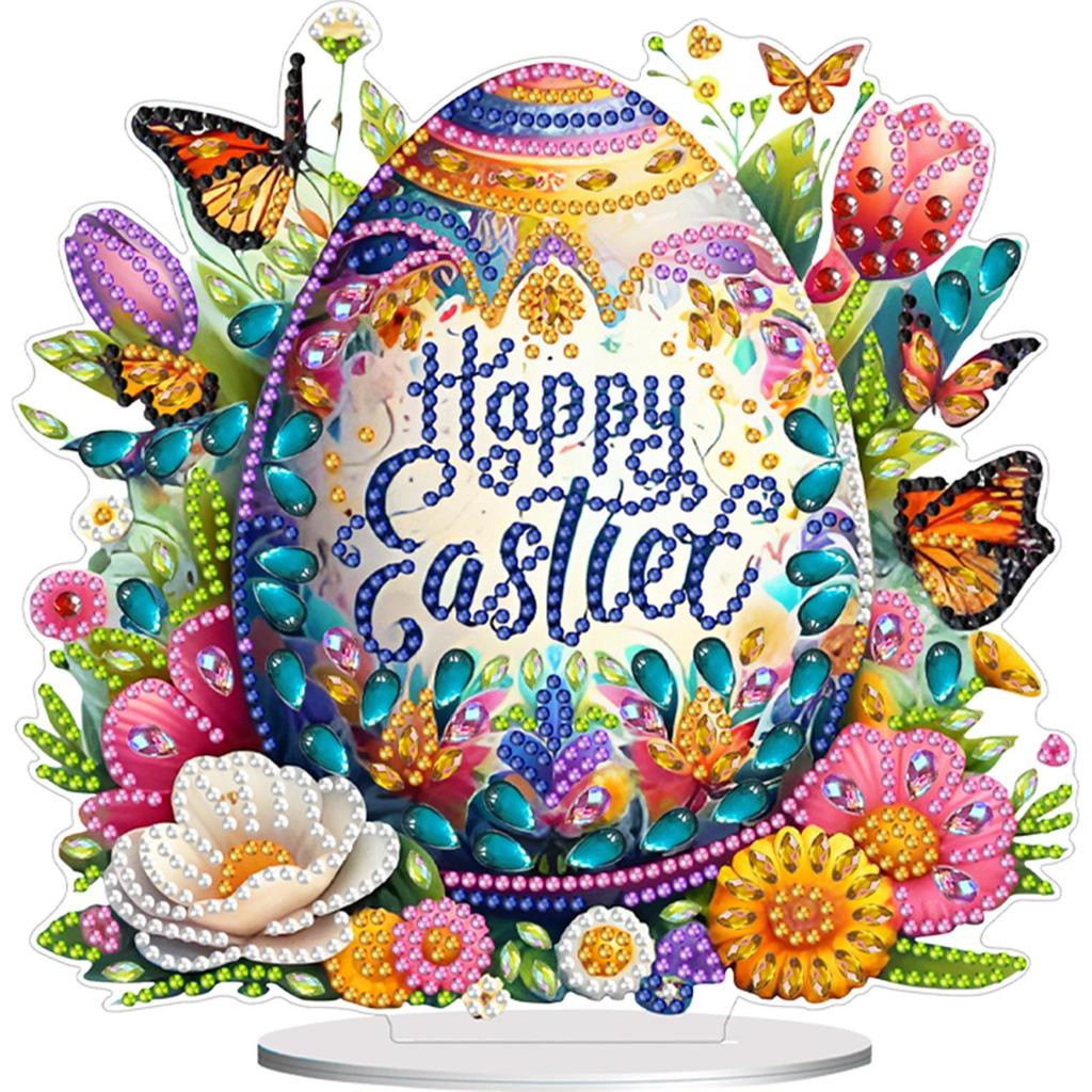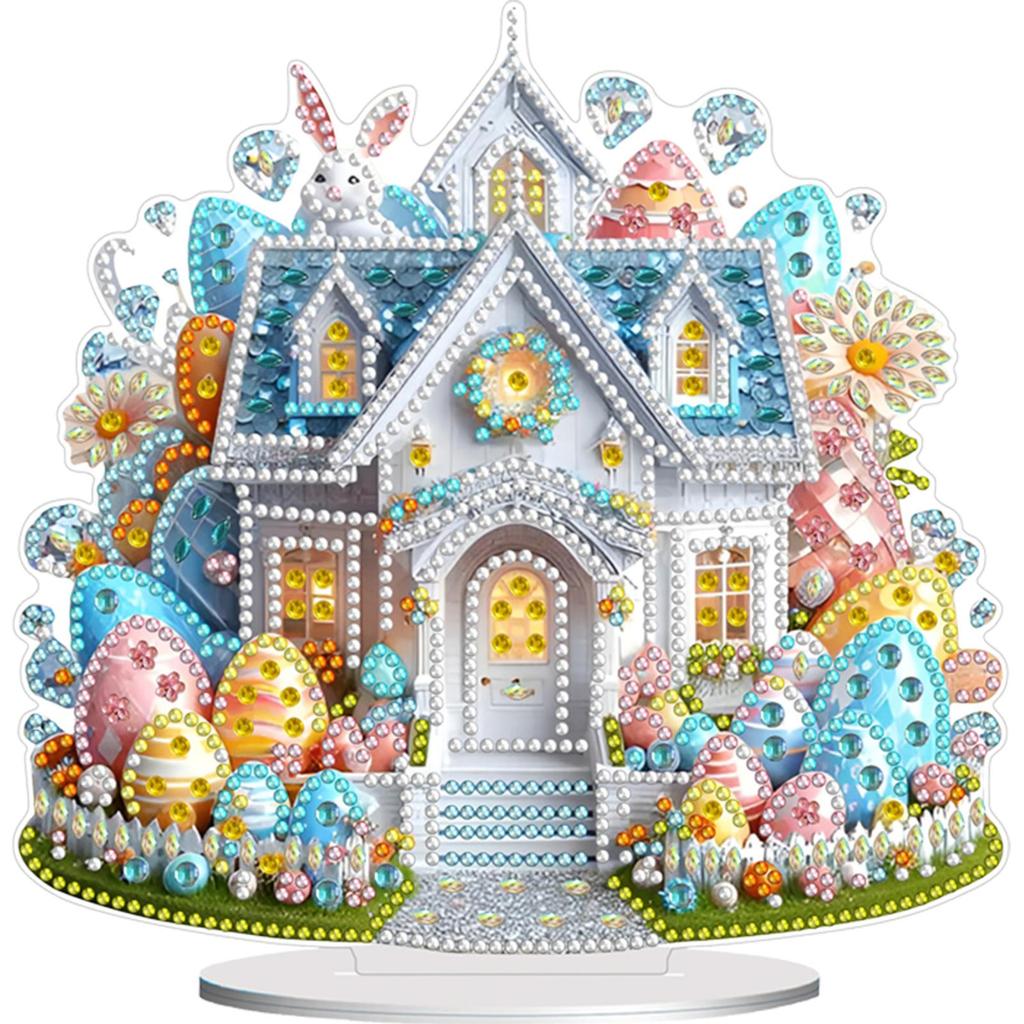 Acrylic Special Shape Easter Egg House Diamond Painting Tabletop Ornaments Kit Rhinestones Desktop Ornaments Bedroom Table Decor