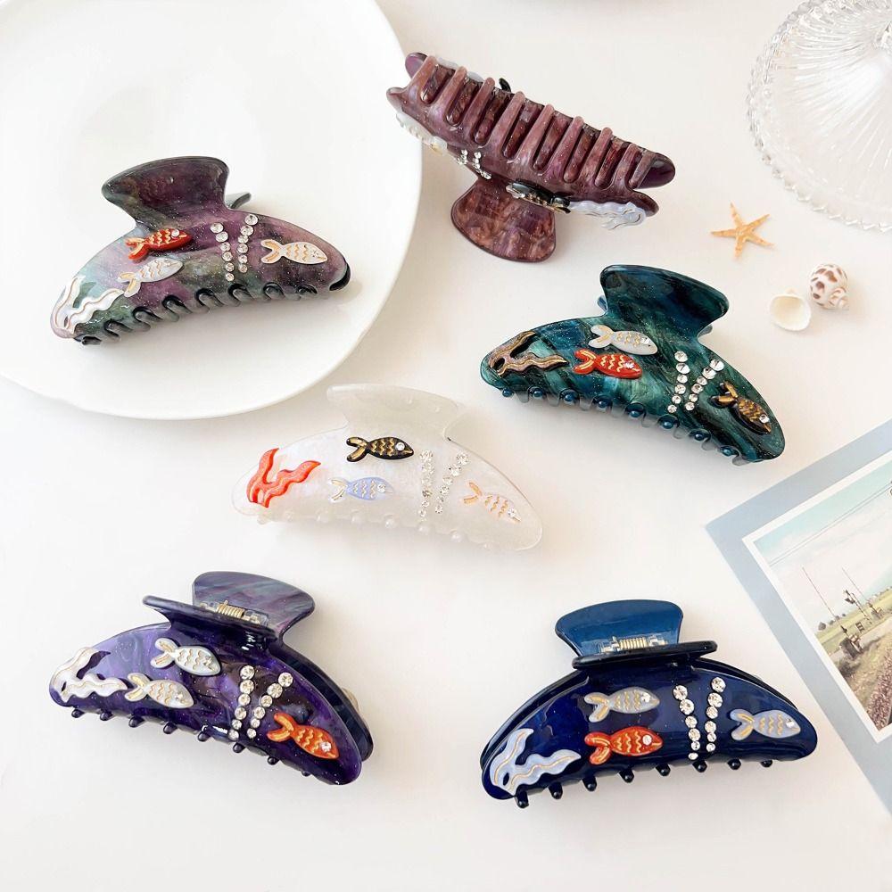Starfish Ocean Shell Hair Grab Hair Clip Acrylic Shark Clip Cute Rhinestone Hair Claw Girls
