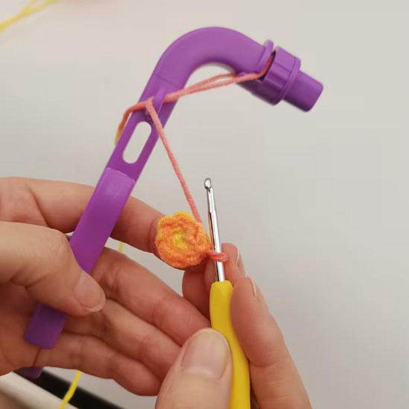 Ударопрочное рукоделие: Этот держатель для вязания крючком фиксирует положение крючка, автоматически выравнивая пряжу.,