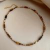 Многослойная цепочка для свитера из сплава, цепочка для ключиц, ожерелье с подвеской из ретро тигрового глаза