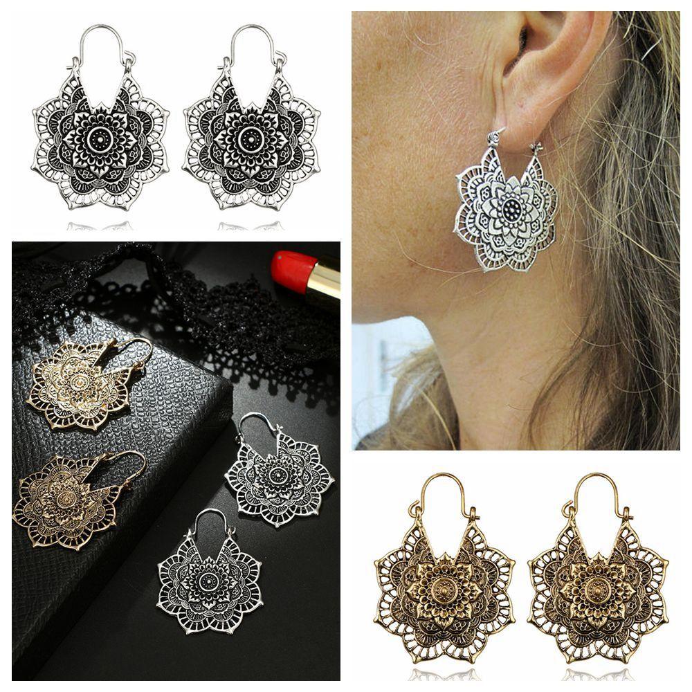 Антикварные племенные бохо висячие серьги-пусеты с полым кулоном в виде цветка мандалы — купить товар онлайн с бесплатной доставкой по всему миру!