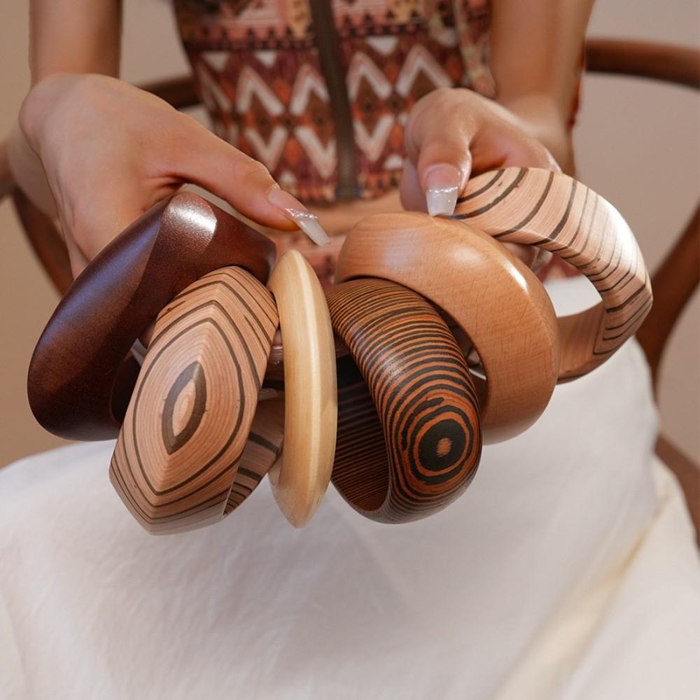 Текстурные деревянные браслеты Широкие геометрические браслеты Новый деревянный браслет для женщин и мужчин