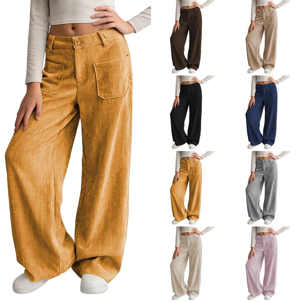 Женские брюки с высокой талией, прямые, вельветовые брюки с широкими штанинами, винтажные свободные брюки с карманами