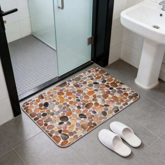 Его современный галечный узор дополняет различные стили декора, что делает его идеальным дополнением для ванных комнат, спален, гостиных или мероприятий на открытом воздухе, таких как кемпинг и пикники.. Прочный, практичный и визуально привлекательный, этот коврик для пола повышает комфорт и улучшает эстетику вашего дома.