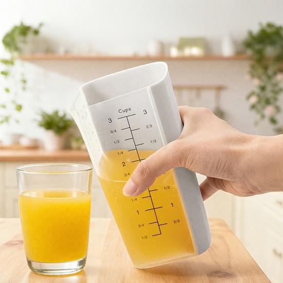Умный двухматериальный дизайн: Сочетая гибкий силиконовый перед с прочной нейлоновой задней стенкой, эта кружка с носиком обеспечивает надежный захват, а гнущаяся передняя часть позволяет точно наливать без проливания, решая проблемы традиционных жестких или скользких мерных стаканов.