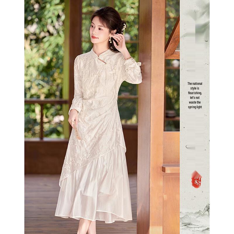 Элегантное миди-платье с длинным рукавом в новом китайском стиле