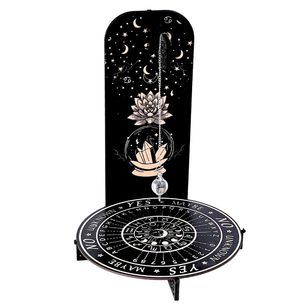 Professional Pendulum Stand, Pendulum Board with Himalayan Quartz Pendulum, Can also be used as a Ouija Board, Fortune Telling Decor