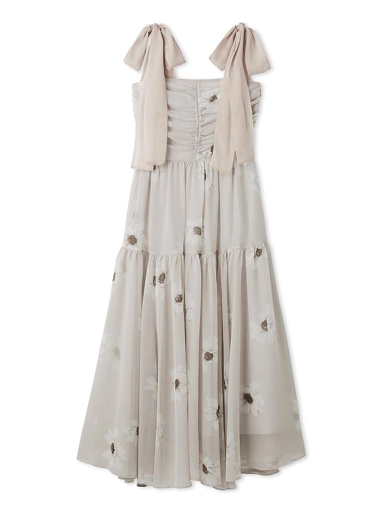 Flower Print Shoulder Ribbon Dress SWFO254330 PBEG 1