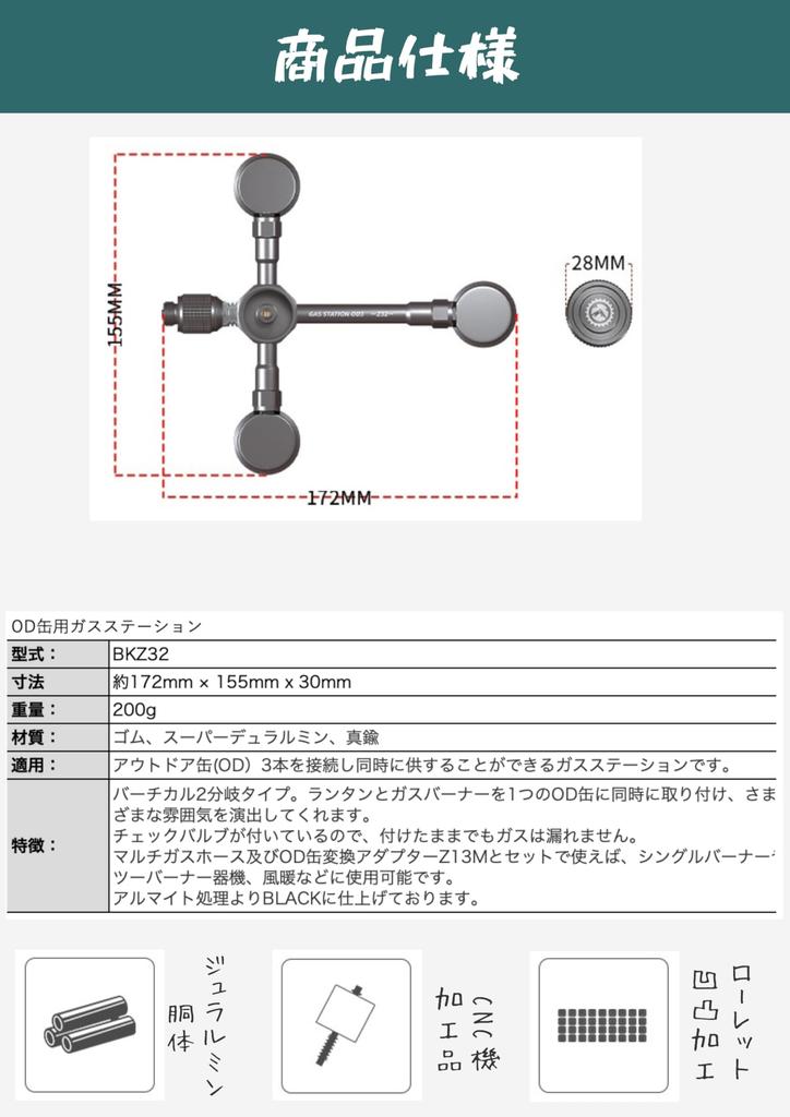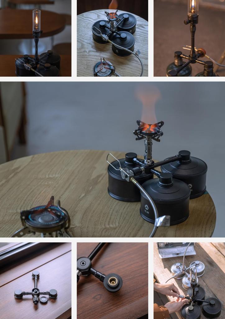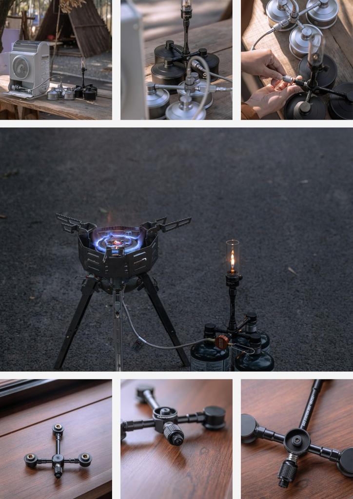 CAMPING MOON Gas Unit, Gas Station, 3-Can OD Can Type, Vertical 2-Branch Gas Adapter, Black Gear, BKZ32