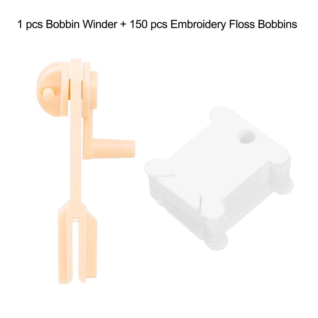 uxcell 150pcs Embroidery Thread Bobbins and Bobbin Winders, Plastic Cross Stitch Thread Organizer Holder Cards for Crafts, DIY, and Sewing, White
