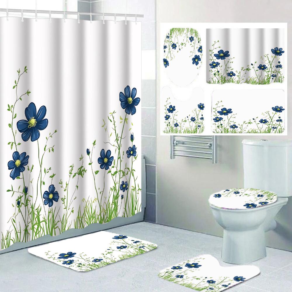 1/4 flowers and plants print shower Curtains, Toilet Seat Decoration, Shower Curtain with Carpet and Toilet Lid, 70.8x70.8 inch — купить товар онлайн с бесплатной доставкой по всему миру!
