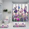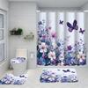 1/4 flowers and plants print shower Curtains, Toilet Seat Decoration, Shower Curtain with Carpet and Toilet Lid, 70.8x70.8 inch